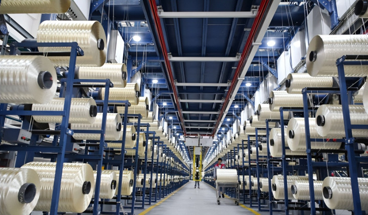 它的单丝直径只有头发丝的1/10,一束12K规格的碳纤维,由12000根单丝组成,手指粗的一小束,就能吊起一架满载的C919大飞机,强度是普通钢材的10倍,重量却只有钢材的1/4,还耐高温、抗腐蚀。