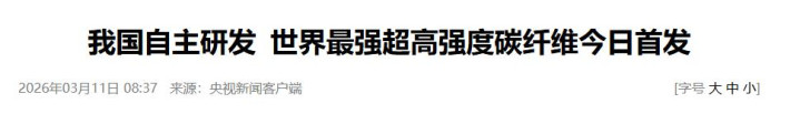 我国自主研发 世界最强超高强度碳纤维今日首发——央视新闻